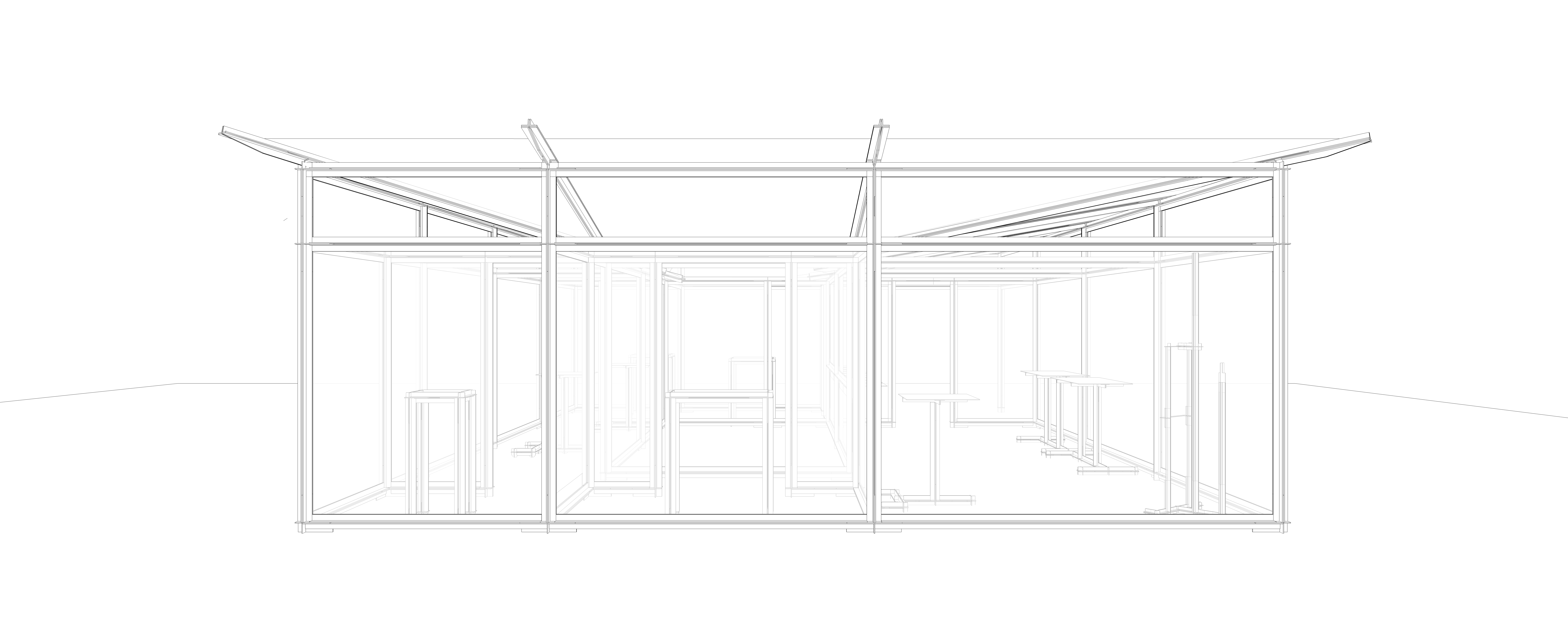 The pavilion, opens up revealing itself to the surrounding landscape, flora and fauna. Courtyards of wildflowers and turf form within the pavilion as well as on its periphery making the pavilion seamless and eliminating the presence of a harsh boundary. There is a sense of being one with the verdure while experiencing the lines strict lines dissolve around you.The project intimately plays with economy of material, pleasure of craft and lightness of structure. While the pavilion seamlessly connects the outside with the inside, it lends itself to create personalised spaces within. In the pavilion, space is structured around five gardens so that the boundary between the inside space and outside space is diffused. The effort here is to break down the space to human scale, get the landscape inside and work out precise details with the material at hand.
